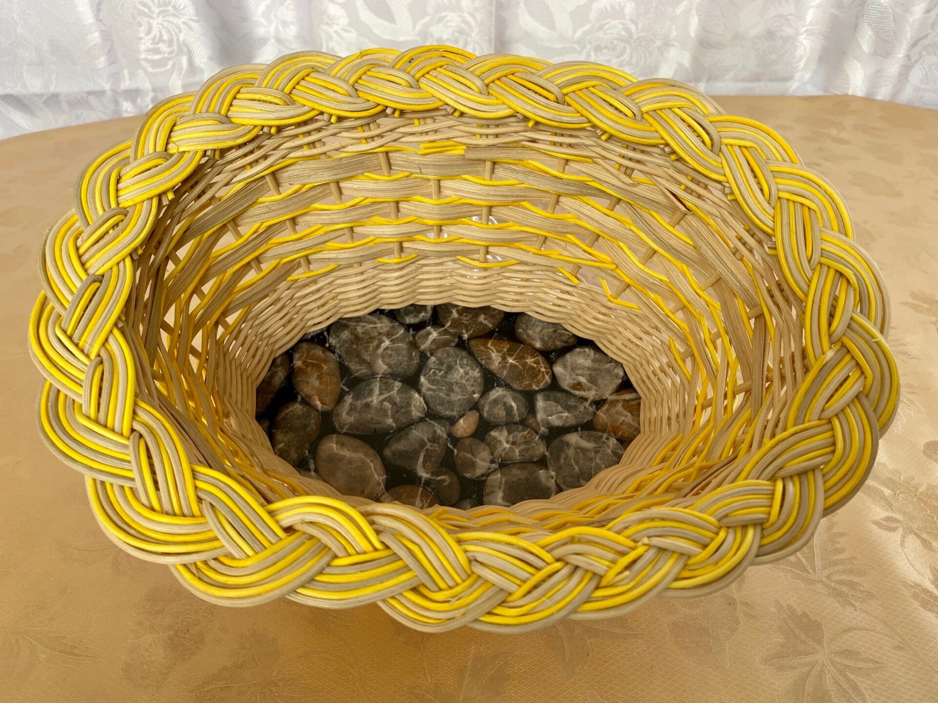 Handgeflochtenes ovales Körbchen aus Peddigrohr. Der Boden ist mit abwaschbarer Folie beklebt und das Flechtmaterial ist mit Peddigrohrlack versiegelt. Die Maße des Bodens sind 20 x 12 cm und die Flechthöhe ca. 13 cm.