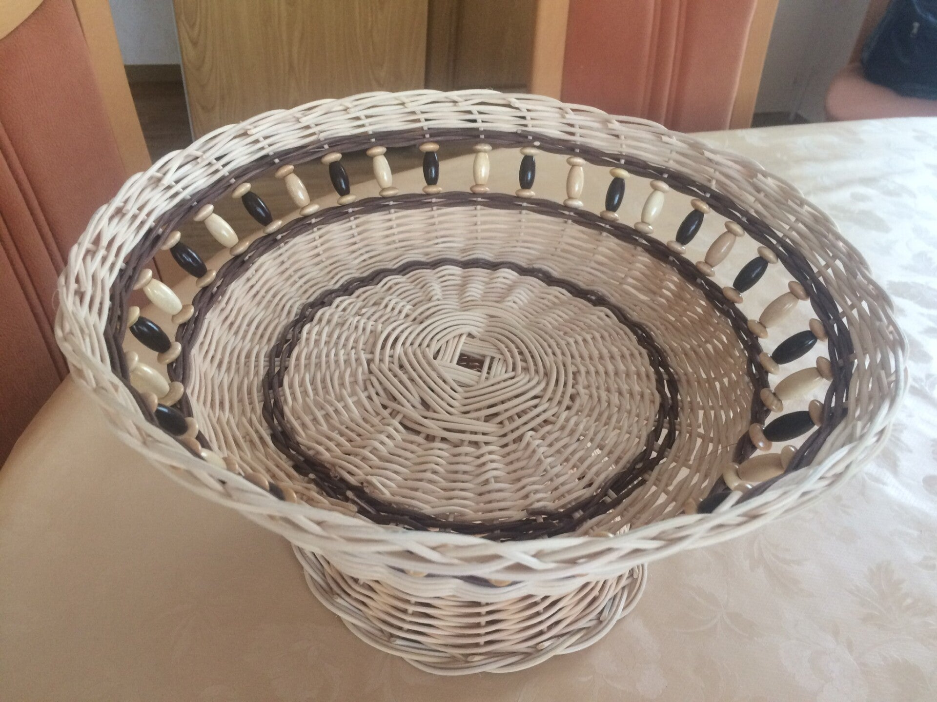Handgeflochtene Dekoschale mit Peddigrohrlack versiegelt.